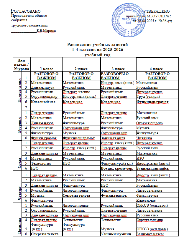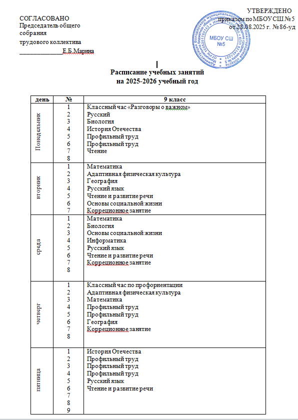 РАСПИСАНИЕ УРОКОВ НА 2025-2026 УЧЕБНЫЙ ГОД
